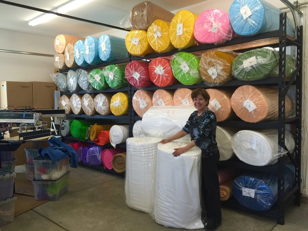 When I'm not selling at shows across the country, you can find me in my shop printing adorable felt pieces. I love having a giant shelf of felt.
